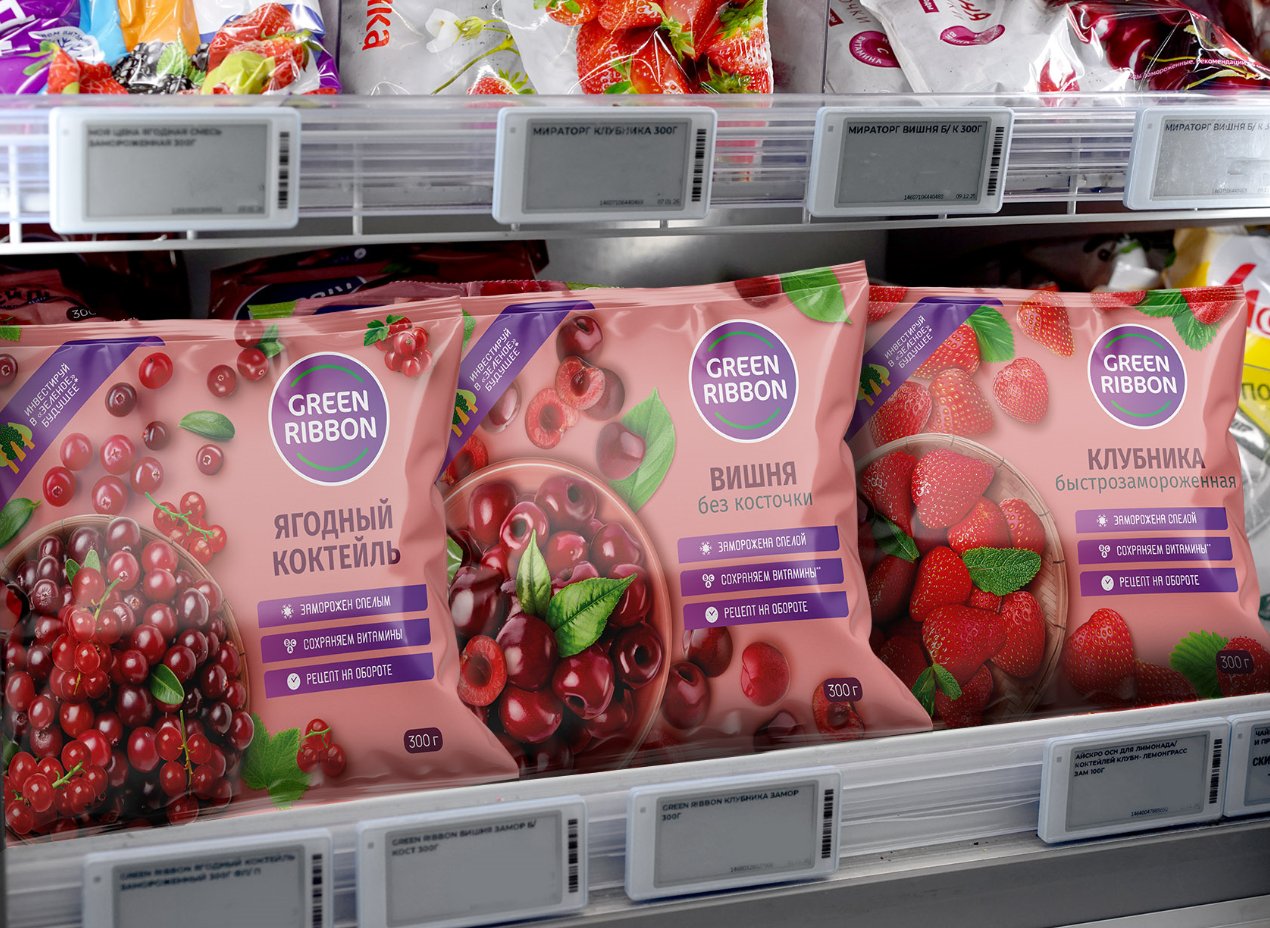 Вторая СТМ – Green Ribbon – решает более утилитарные задачи: закрыть потребность покупателя в овощах, ягодах и грибах для повседневного приготовления. Позиционирование марки строится вокруг трех основных тезисов: основа здорового питания, технологичность (шоковая заморозка) и удобство использования.